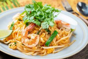 海老入りの酸っぱくて辛いスープ。レモングラス、カフィアライム、ナンプラーが香りの決め手です。 - パッタイ(ผัดไทย)